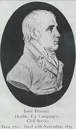 Джон Фендалл помер 10 листопада 1825 року і був похований на кладовищі Саут-Парк-Стріт в Калькутті.