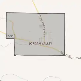 Джордан-Веллі розташований за координатами 42°58′46″ пн. ш. 117°03′27″ зх. д. (42.979333, -117.057442)[2]. За даними Бюро перепису населення США в 2010 році місто мало площу 5,39 км², уся площа — суходіл.