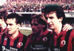 | Джузеппе Сіньйорі (у центрі) з партнерами по «Фоджі» | ||||||||||||||||||||||||||||||||||||||||||||||