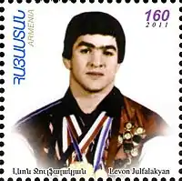 ![]() Вірменська поштова марка 2012 року, присвячена Левону Джулфалакяну Вірменська поштова марка 2012 року, присвячена Левону Джулфалакяну | ||||||||||||||||||||||||||||||||||||