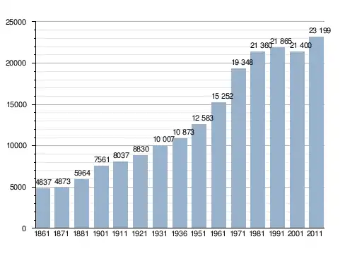 Станом на 31 грудня 2014 року в муніципалітеті офіційно проживали 1404 іноземці з 64 країн, серед них 561 громадянин країн Євросоюзу та 77 громадян України.[4]