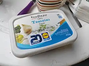 Огірки натирають на дрібній тертці, попередньо очистивши їх від шкірки, м'якоть відчавлюють та підсолюють. У глибокій тарілці замішують фільтрований йогурт, товчений часник і зелень. Додають туди віджату від вологи м'якоть огірка, оливкову олію, оцет, сіль, перець. Перемішують та залишають у холодильнику до подачі.