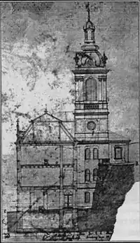 Проте, як видно з проекту, дзвіниця 1828 року відрізнялася від сучасної. Вона була чотириярусною, мала трохи простіші форми бані із заломом та світловим ліхтарем, завершеним кардинальським хрестом, що було алюзією до титулу першого кардинала-українця митрополита Михайла Левицького.