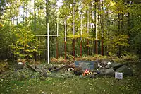 Сьогодні на згадку про місце поховання поставлений невеличкий обеліск біля дороги.