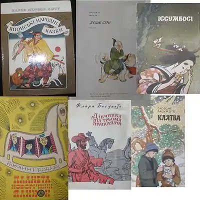Після цього починається довгий період перекладів з японської: оповідання Акутаґави Рюноске (21 березня 1969 «Мандарини» у «Літературній Україні», потім три твори у «Всесвіті», № 7 за 1970 рік та окремим виданням у той-таки серії «Зарубіжна новела», а в 2000-і роки — ще дві збірки у львівському видавництві «Піраміда»); романи Абе Кобо «Спалена карта» (1969), «Людина-коробка» («Всесвіт», 1975, № 6), «Жінка в пісках» (1988), «Чуже обличчя» (1988) і його ж оповідання «Прірва часу» («Всесвіт», 1980, № 6); роман Нацуме Сосекі «Ваш покірний слуга кіт» (1973, в серії «Зарубіжна сатира та гумор»); збірка повістей та оповідань Кавабати Ясунарі «Країна снігу» (1976; «Танцівниця з Ідзу» та «Подяка» попередньо друкувалися у «Всесвіті», 1971, № 8) і його ж романи «Стугін гори», «Давня столиця» й «Танцівниці» (2007); дитяча книжка (цикл оповідань) Саотоме Кацумото «Клятва»; роман Кіта Моріо «Родина Ніре», роман Фукунаґи Такехіко «Острів смерті» («Всесвіт», 1983, № 11, 12); збірка японських народних казок (1986); романи Муракамі Харукі «Погоня за вівцею» (2004), «Танцюй, танцюй, танцюй» (2006), «Хроніка заводного птаха» (2009), «1Q84» (2009)(том 1), «1Q84» (2010)(том 2), «1Q84» (2011)(том 3), роман Хісакі Мацуури «Півострів» (2009), твір Мурасакі Шікібу «Повість про Ґенджі» в трьох книгах (2018, 2020, 2022) .