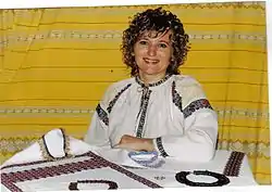 Основні твори: блузки жіночі, дитячі сорочки, доріжки, серветки, рушники.