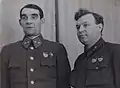 Дивізійний комісар Клоков Василь Павлович (праворуч) у однострої з відповідними знаками розрізнення. Петлиці несуть на собі емблему Військово-Повітряних сил. 1941 р.