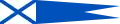 | 16. Брейд-вимпел командира дивізіону кораблів (суден) (малюнок 16) — являє собою військово-морський прапор зменшеного розміру з конічним полотнищем й косицями синього кольору. Мал. 16. Брейд-вимпел командира дивізіону кораблів (суден) |