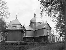 Наявна дерев’яна церква збудована 1758 року. Це хрещата в плані будівля, восьмерик з банею, нави якої увінчані ліхтарем із маківкою. Ймовірно, добудований згодом присінок. Він прикрашений по кутах двома вежами-ліхтарями. Відновлювалась у 1931 році. Очевидно, після цього вона отримала сьогоднішній об'ємно-просторовий вигляд. Після Другої світової війни увесь час діяла.