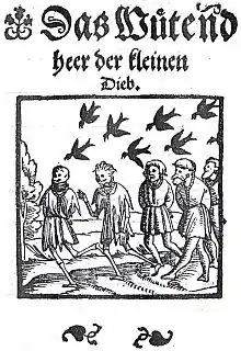 У народній германській міфології Дикі Лови — це гурт злих духів та привидів, що летять у небі в часи зимових бурь (від Різдва до Богоявлення) у супроводі гончих псів. Небезпечна для людей, особливо на перехрестях доріг. Проводиря Диких Ловів — Дикого Мисливця — порівнюють з Одіном, що несеться по небу на чолі війська мертвих. Французам було відоме власне ім'я володаря Диких Ловів — щось на кшталт Геллекен. Також у Середньовіччі із Диким Мисливцем асоціювали конкретних історичних осіб: Аттілу, Карла Великого. Альтернативний погляд був, що це душі грішників під проводом Каїна та Ірода.