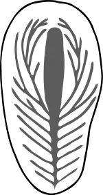 - Своєрідний тип симетрії, схожий з білатеральною симетрією сучасних організмів, однак із зсувом правих і лівих напівсегментів відносно один одного. М. О. Федонкін позначив цей тип симетрії запозиченим з математики терміном «симетрія ковзного відбиття». У сучасних тварин ковзна симетрія зустрічається вкрай рідко (один із прикладів — розташування м'язових елементів — міомерів і міосепт — у ланцетника)[21].