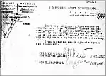 | 18 августа 1942 года я был арестован гестапо по доносу некоего Швецова, который сообщил немцам о том, что я являюсь работником НКВД, по этой же причине вместе со мной были арестованы другие товарищи: Трусевич, Клименко, Кузьменко, Путистин, Комаров, Тютчев, Свиридовский и Балакин. После допроса нас отправили в Сырецкий концлагерь, где мы находились 14 месяцев, с сентября 1942-го по октябрь 1943 года | ||