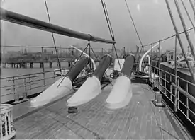Побудований спеціально для випробування пневматичних гармат «динамітний крейсер» USS Vesuvius був укомплектований в 1890 році і після експериментальних стрільб 1891 і 1893 років навіть брав участь в Іспансько-американській війні 1898 року, обстрілюючи ночами Сантьяго. Потім, однак, він був поставлений на прикіл і в 1904 році був перетворений в експериментальне торпедне судно з демонтуванням усіх динамітних гармат. Ще одне судно з динамітною гарматою — бразильський допоміжний крейсер Нітерой — зробило з неї лише єдиний символічний постріл 15 березня 1894 року в день остаточного придушення повстання в Ріо-де-Жанейро[33].