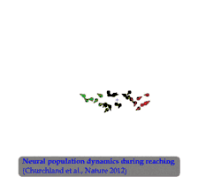 Неоднорідність та складність поведінки одиничних нейронів, виявлених Черчлендом та ін., розходилась з репрезентаційними моделями руху і не піддавалась інтерпретації. Тільки застосувавши методи зменшення розмірності, дослідники виявили чіткий механізм на рівні нейронної популяції: підготовча активність покладала початковий стан динамічного процесу, який розгортався під час виконання руху.[8] За складною, багатофазною поведінкою одиничних нейронів приховувалась систематична обертальна динаміка на рівні популяції нейронів.