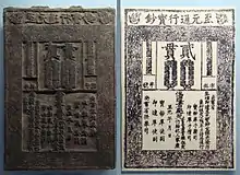 Одним з найбільш помітних застосувань друкарської техніки було Цзяочао, паперові гроші юанів. Цзяочао виготовляли з кори шовковиці. Уряд Юаня використовував дерев’яні бруски для друку паперових грошей, але в 1275 році перейшов на бронзові пластини. Монголи експериментували зі створенням паперової грошової системи за китайським зразком на контрольованих монголами територіях за межами Китаю. Юаньського міністра Болада відправили в Іран, де він пояснив юанівські паперові гроші суду Іл-ханства Гайхату. Уряд Іл-ханства випустив паперові гроші в 1294 році, але недовіра громадськості до екзотичної нової валюти прирекла експеримент.