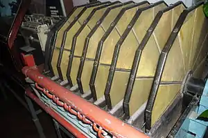 Сектори вставляють в спеціальні гнізда пустотілого вала і кріплять до нього за допомогою шпильок з накладками. До торців вала притискуються за допомогою пружин розподільні головки. Вихідна пульпа надходить між дисками у ванну. Фільтрувальна поверхня створюється боковими стінками дисків. У зоні фільтрування сектори дисків через розподільну головку підключені до вакуум-насоса.
