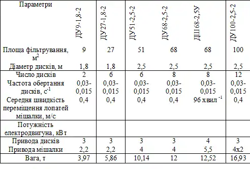 Технічна характеристика дискового вакуум-фільтра наведена у таблиці.
