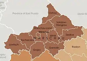 - крайсгауптманшафт Сохачев (нім. Kreishauptmannschaft Sochaczew)[3]