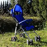 - Візок-тростина — складаний візок, що займає мінімум місця в складеному стані. Ідеальний для подорожів і переїздів, коли дитину мусять часто брати на руки й складати візок.