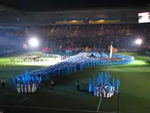 Вже за тиждень після підписання акту прийняття, 14 вересня 2008, на стадіоні відбулася урочиста церемонія відкриття за участю президента України Віктора Ющенка, який зробив символічний перший удар по м'ячу на нововідкритому стадіоні. Після урочистої церемонії відбулися товариські матчі «Дніпро» — «Спартак» (Москва) (ветерани 1983 року) та «Дніпро» — «Динамо» (Київ) (ветерани 1988 року). Урочистості завершилися лазерно-піротехнічним шоу[2][3].