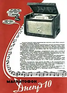 - Днепр-9 (1956 р., перший у СРСР двохдоріжковий магнітофон)