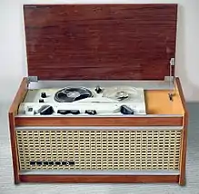 Вихідний каскад підсилювача виконано по двотактній схемі (у всіх попередніх — по однотактній), що забезпечило більшу якість відтворення звуку. Встановлено чотири гучномовці. Дві швидкості стрічки — 19,05 і 9,53 см / с., габарити 550 × 330 × 330 мм, маса 24 кг.