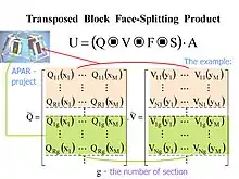 Аналогічно для блокового транспонованого торцевого добутку (або блокового стовпцевого добутку Хатрі-Рао) двох матриць з однаковою кількістю стовпців у відповідних блоках справедливо[7]: