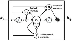 - : Вектор входового вентиля. Вага отримання нової інформації.