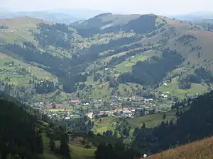 ![]() Панорама Довгопілля (вигляд з горішнього кінця села Кохан) | |