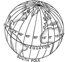 | Екватор ділить планету на Північну та Південну півкулі. Він лежить на широті 0°. | |