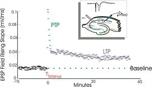 - Bliss TV, Lomo T (1973). «Long-lasting potentiation of synaptic transmission in the dentate area of the anaesthetized rabbit following stimulation of the perforant path». J Physiol 232 (2): 331-56. PMID 4727084. (Повний текст у відкритому доступі)(англ.)