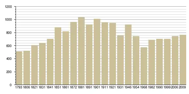 Динаміка населення (base Cassini de l'EHESS pour les nombres retenus jusque 1962[3], base Insee à partir de 1968 (population sans doubles comptes puis population municipale à partir de 2006)[4] · [5] ):