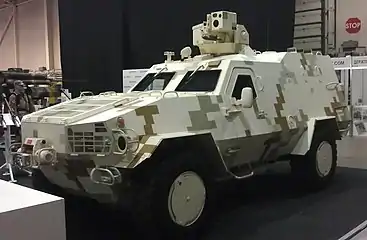 - бойовий модуль «Блік-2» — дистанційно керований кулеметно-гранатометний комплекс (12,7-мм кулемет, 30-мм автоматичний гранатомет АГС-17 і пристрій для відстрілу димових гранат, вперше представлений 11 вересня 2014 на збройовій виставці «ADEX-2014»), розроблений на Київському бронетанковому заводі. Згодом був представлений модернізований варіант, «Блік-2М» на якому було встановлено 12,7-мм кулемет НСВТ (150 пострілів), 30-мм автоматичний гранатомет КБА-117 (або АГ-17; 29 пострілів), 7,62-мм кулемет КТ-7,62 (або ПКТ; 250 пострілів), 1 ПТРК «Корсар»[28]