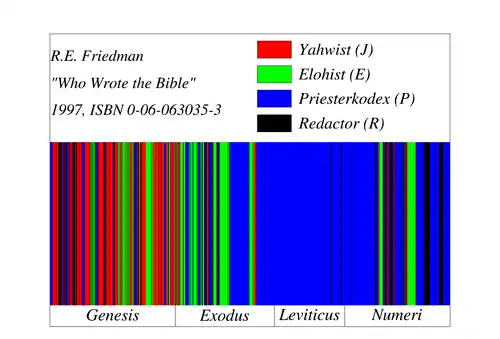 Документарна гіпотеза передбачає чотири документи: Ягвіст (J, нім. Jehovist), Елогіст (E, нім Elohist), Джерело жерців (P, нім. Priesterkodex) і Повторення Закону або Девтерономіст (D, лат. Deuteronomium).