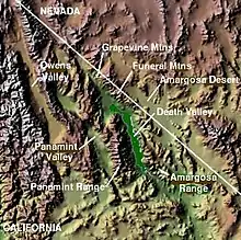 Доли́на Сме́рті (англ. Death Valley) — міжгірна западина в штатах Каліфорнія і Невада, найнижча западина в Північній Америці (86 м нижче рівня моря в точці з координатами 36°14′ пн. ш. 116°46′ зх. д.). Являє собою міжгірську западину в районі пустелі Мохаве та Великого Басейну на заході США в штаті Каліфорнія (східна Каліфорнія, округ Іньйо). Долина Смерті розташована на південний схід від гірського ланцюга Сьєрра-Невада, у Великому Басейні на території пустелі Мохаве. Долина також включає більшу частину Національного парку Долина Смерті. Тут на поверхні висохлого озера Рейстрек-Плая виявлене цікаве геологічне явище — Камені, що рухаються.