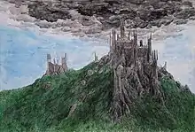 "There lies the fastness of Southern Mirkwood," said Haldir. "It is clad in a forest of dark fir, where the trees strive one against another and their branches rot and wither. In the midst upon a stony height stands Dol Guldur, where long the hidden Enemy had his dwelling. We fear that now it is inhabited again, and with power sevenfold. A black cloud lies often over it of late. In this high place you may see the two powers that are opposed one to another; and ever they strive now in thought, but whereas the light perceives the very heart of the darkness, its own secret has not been discovered. Not yet."[3] |