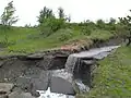Глибоий яр, утворений постійним соляним потоком з териконів