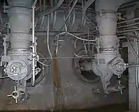 На засипних пристроях з газовідсічними клапанами встановлюються дві приймальні лійки — окремо для кожного скіпа, штанга малого конуса при цьому проходить між приймальними лійками.