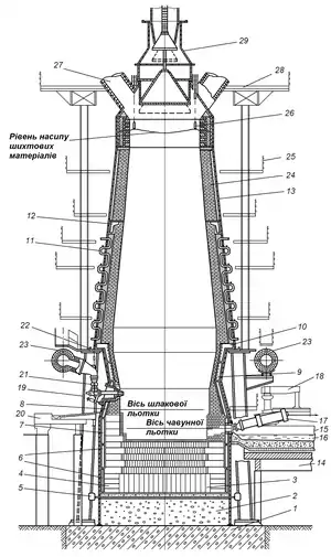 - The Editors of Encyclopædia Britannica (7-1-2008). Blast furnace. https://www.britannica.com. Encyclopædia Britannica, Inc. Процитовано 11 квітня 2017. (англ.)