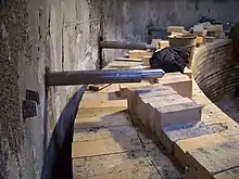 На горизонтальну поверхню верхньої частини фундаменту кладуть вогнетривке мурування дна горна — під.