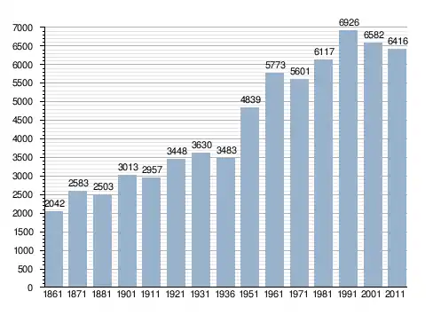 Станом на 31 грудня 2014 року в муніципалітеті офіційно проживали 43 іноземці з 17 країн, серед них 22 громадяни країн Євросоюзу та 1 громадянин України.[4]