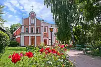 Другий комплекс постав у стилі класицизму. Хоча його костел був розібраний у XIX столітті, але зараз ще можна спостерігати його залишки у південній частині, де він у певному місці не був розібраний навіть до рівня землі. Стара збережена стіна сягає у висоту кількох метрів та близько двох у довжині півкола, яким завершувався костел із півдня. Над цими старими залишками стіна була частково відновлена. Поки що об'єкт на стадії будівництва. Збережена підземна частина костелу.