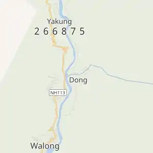 Донг лежить у місці злиття річок Лохіт і Саті (або Саї Ti) на висоті 1240 метрів над рівнем моря[3].