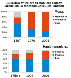 - Про кількість та склад населення Донецької області за підсумками Всеукраїнського перепису населення 2001 року. Архів оригіналу за 17 травня 2015. Процитовано 23 травня 2015.