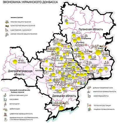 Великий центр вугільної промисловості, чорної і кольорової металургії України.