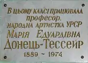 Меморіальна дошка М. Донець-Тессейр у приміщенні Київської консерваторії