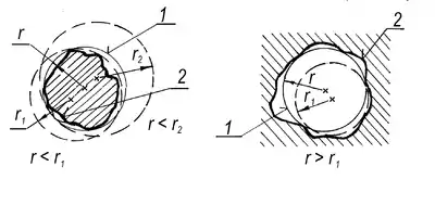 - Прилеглий циліндр — циліндр мінімального діаметра, описаний навколо реальної зовнішньої поверхні, або максимального діаметра, вписаний в реальну внутрішню поверхню[1].