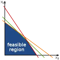 У задачах лінійного програмування з n змінними необхідною, але недостатньою умовою обмеження можливого набору є те, щоб число обмежень було принаймні n + 1 (як показано на прикладі вище).