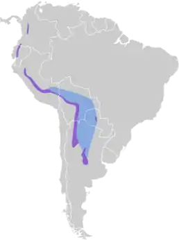 Андійські дорадито гніздяться в Андах. Ареал їх гніздування простягається від північної Колумбії через Еквадор, Перу і Болівію до північно-західної Аргентини і гірських районів в центрі країни та до західного Парагваю. Взимку частина південних популяції мігрує в долини, досягаючи крайнього заходу Бразилії, сходу Болівії і Парагваю та сходу центральної Аргентини. Бродячі птахи спостерігалися навіть на східному узбережжі Бразилії.
