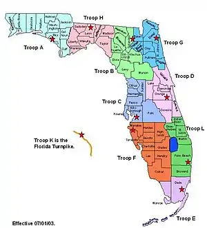 Дорожня поліція Флориди поділяється на шість бюро: